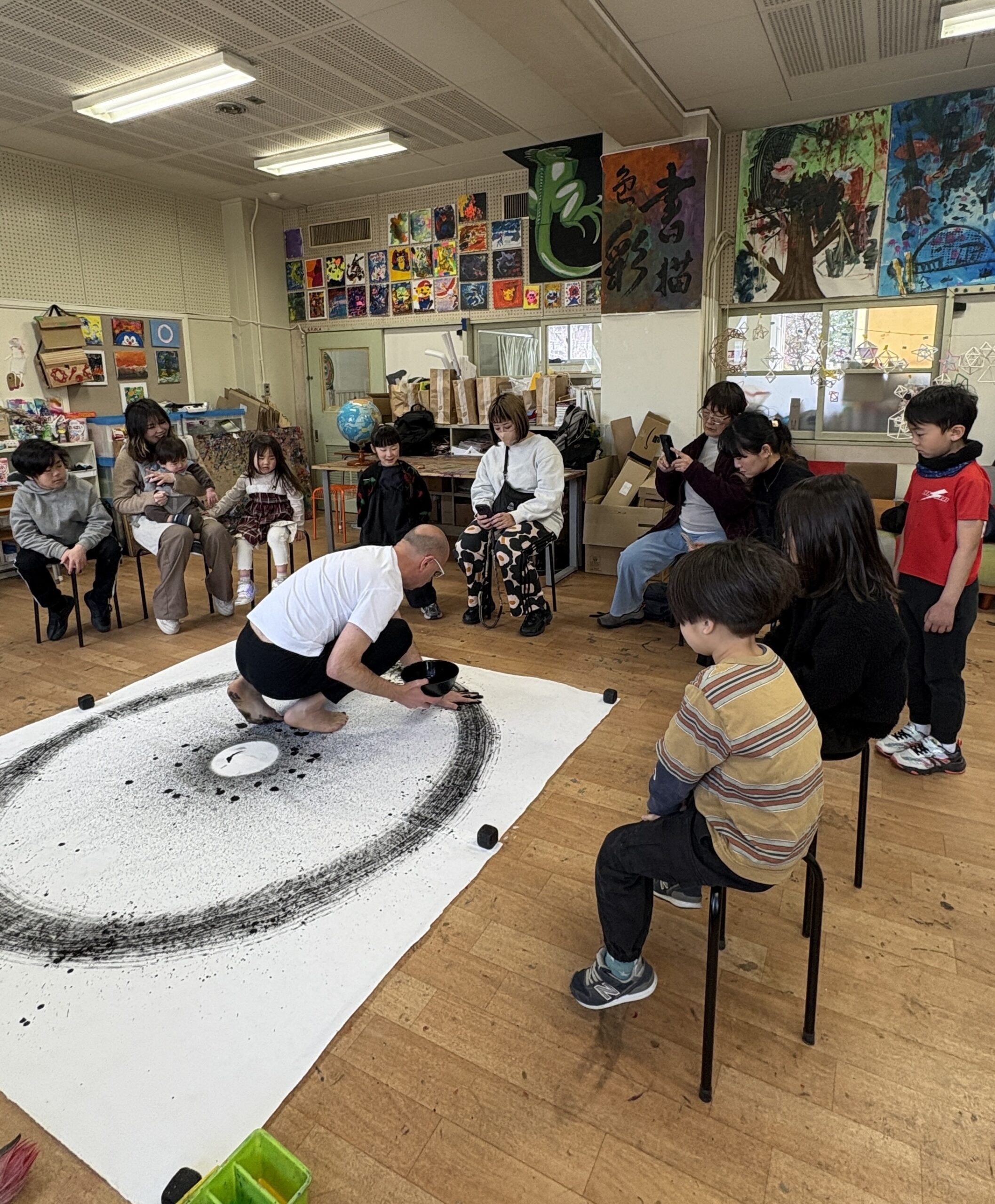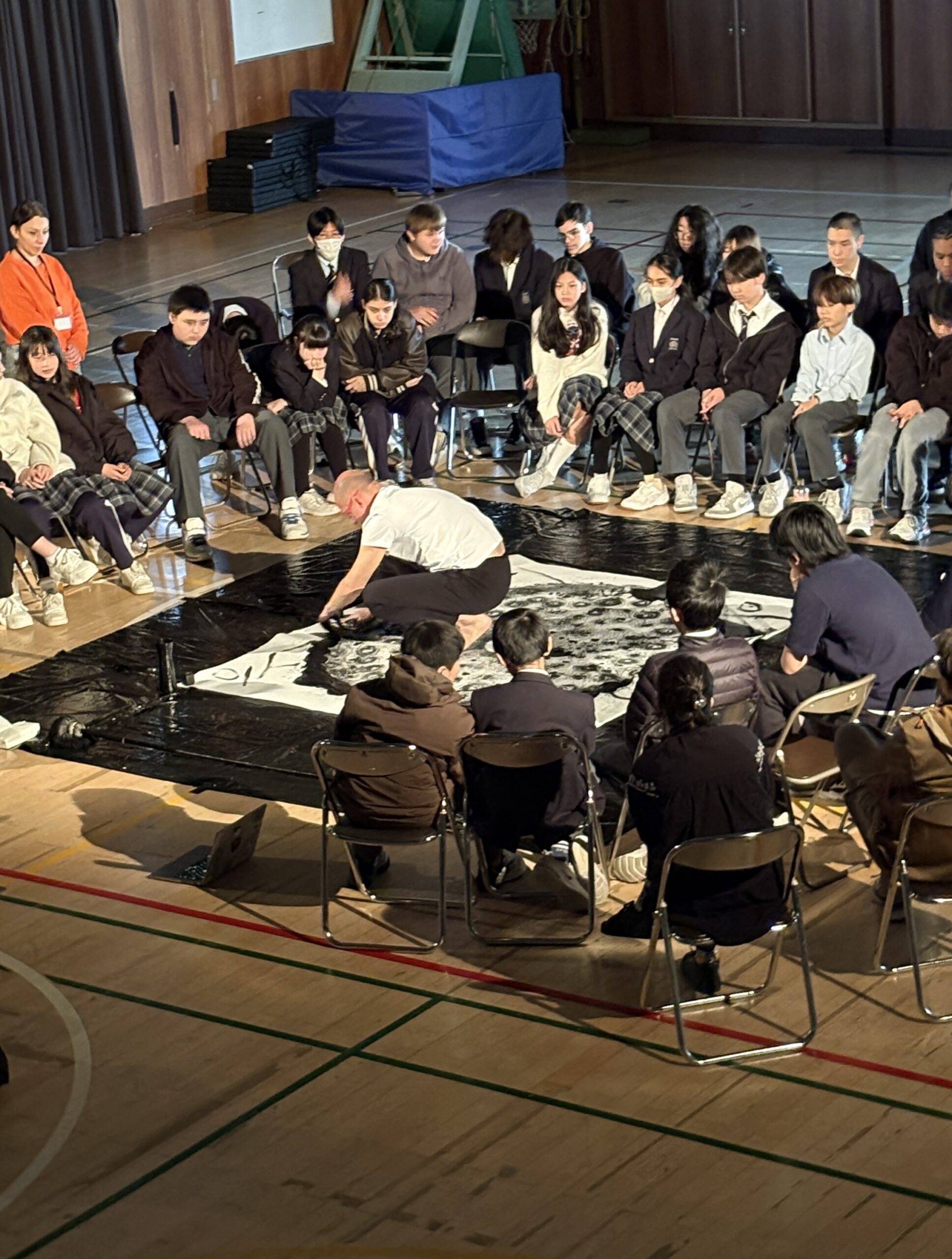 We brought our Ichigo Ichie Live Painting to a school environment for the very first time at DSK (Deutsche Schule Kobe). It was an incredible debut, with 120 children who were deeply engaged, asking endless questions and eagerly wanting to become part of the painting itself. Their active participation and curiosity turned the performance into a lively, shared creative journey that perfectly captured the spirit of a once-in-a-lifetime moment.
